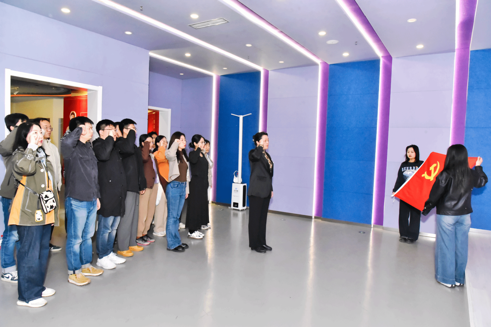 学院党委书记杨君教授带领全体党员在体验馆宣誓厅重温入党誓词。铿锵誓言回荡展厅,彰显党员坚守廉洁、忠诚履职的坚定决心。