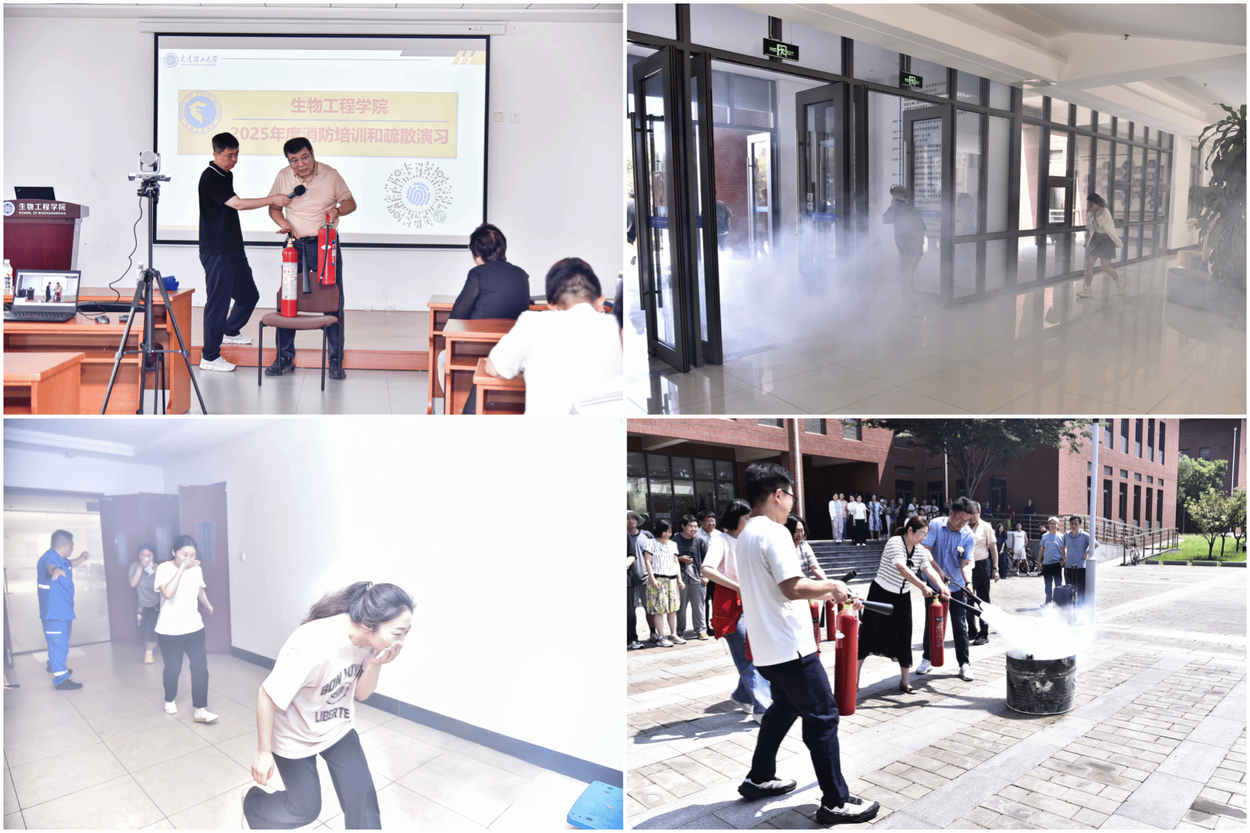 为进一步强化我院师生消防安全意识,提升突发事件应急处置能力,7 月 10 日上午,校保卫处联合生物工程学院开展2025年示范性消防安全培训及疏散逃生演练。学院领导班子成员及全体师生参与本次活动。