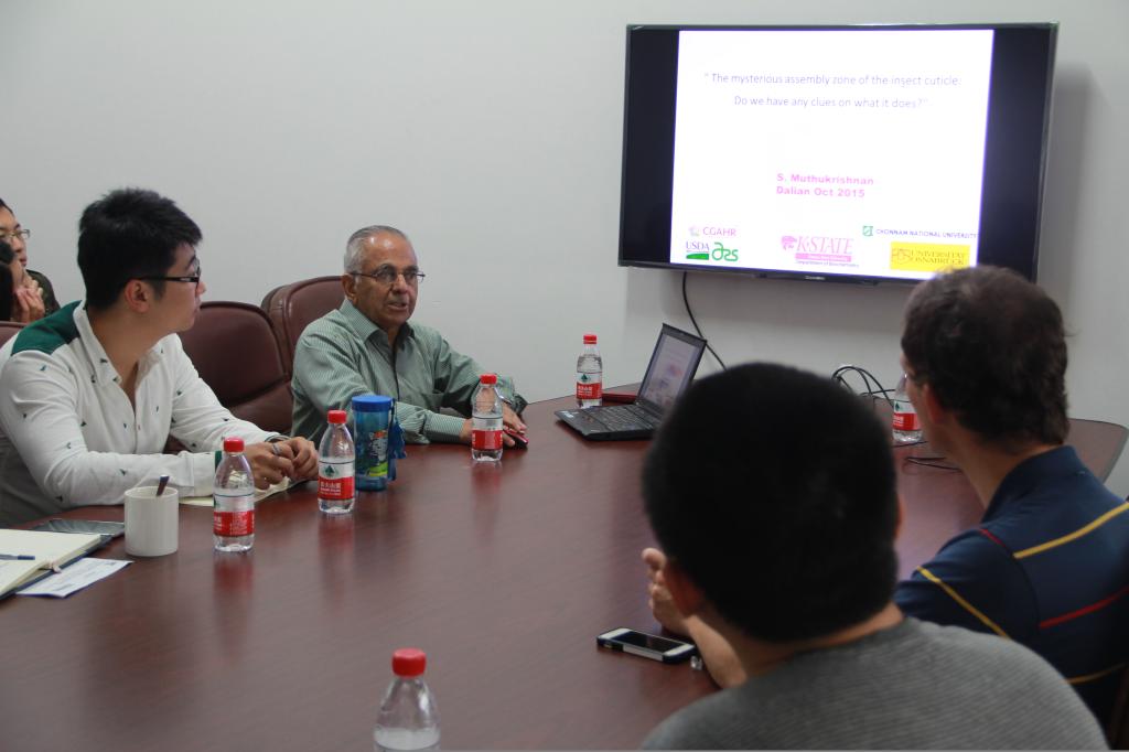 2015年10月15日,应大连理工大学生命科学与技术学院杨青教授邀请,堪萨斯州立大学Subbaratnam Muthukrishnan教授访问我院,做了题为“The mysterious assembly zone of the insect cuticle:Do we have any clues on what it does?”的精彩学术报告。