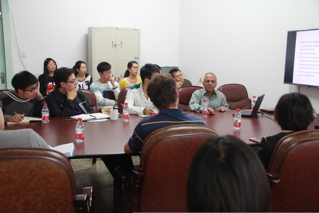 Subbaratnam Muthukrishnan教授课题组以赤拟谷盗为实验研究对象,利用基因敲除和免疫定位等技术发现昆虫表皮几丁质合成区域以及参与几丁质合成相关的关键蛋白质,阐释了包含几丁质合成、几丁质纤维组装和几丁质片层形成的几丁质装配过程。课题组通过大量基因敲除实验和活体实验证实了一些蛋白在几丁质合成过程中的相关作用,并通过免疫定位的方法对这些蛋白的表达量、作用位点及其表达时序进行了表征。建立了一个完整的几丁质装配过程模型,对今后研究几丁质合成相关酶有深远的指导意义。最后,教授详细、耐心的回答了在场师生的提问,进行了良好的交流互动。此次报告极好的引导与激发了大家的兴趣与好奇,对我们之后的研究工作有很好的启发作用。
