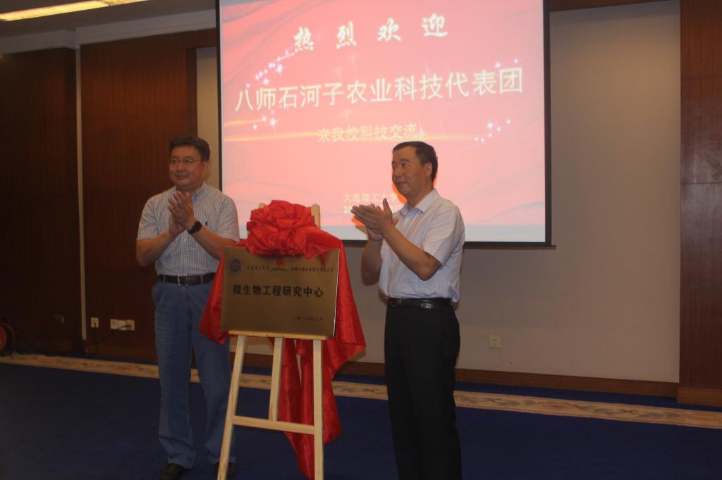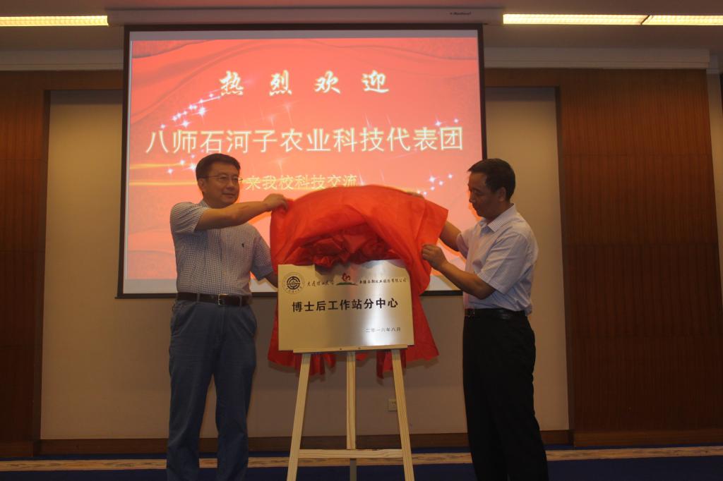 会上,校长助理姚山与新疆西部牧业股份有限公司副总经理陈光谱分别代表双方揭牌“微生物工程研究中心”和“博士后工作站分中心”。两个中心的成立是对双方前期合作的一个良好总结,同时也标志着我校与新疆石河子地区的科技合作进入了全新阶段。