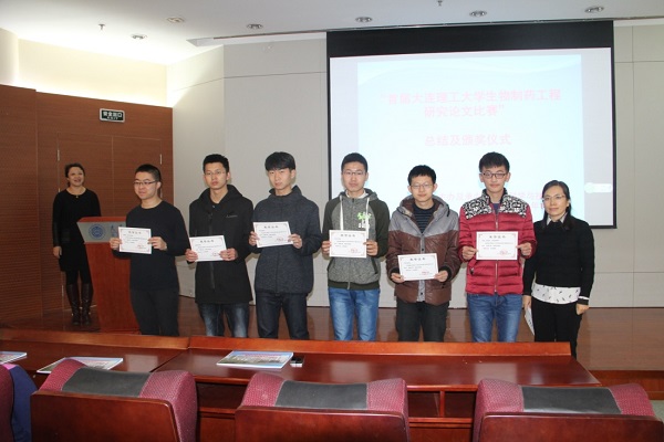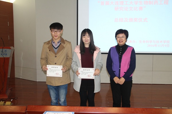 2016年11月9日,大连理工大学 “首届大连理工大学生物制药工程研究论文比赛总结及颁奖仪式”在化工楼D102隆重举行。会议由生命学院党支部书记杨君副教授主持,参加颁奖仪式的有化环生学部副部长潘艳秋教授、生命科学与技术学院院长贾凌云教授、副院长袁文杰副教授、辽宁省生物实验教学示范中心副主任孜力汗老师等。