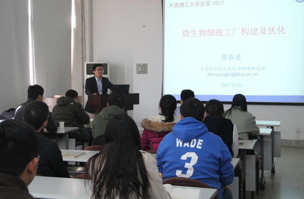 2017年3月21日,中国科学院大连化学物理研究所生物技术研究部的周雍进博士访问我院,并做了题为“微生物细胞工厂构建与优化”的精彩学术报告。