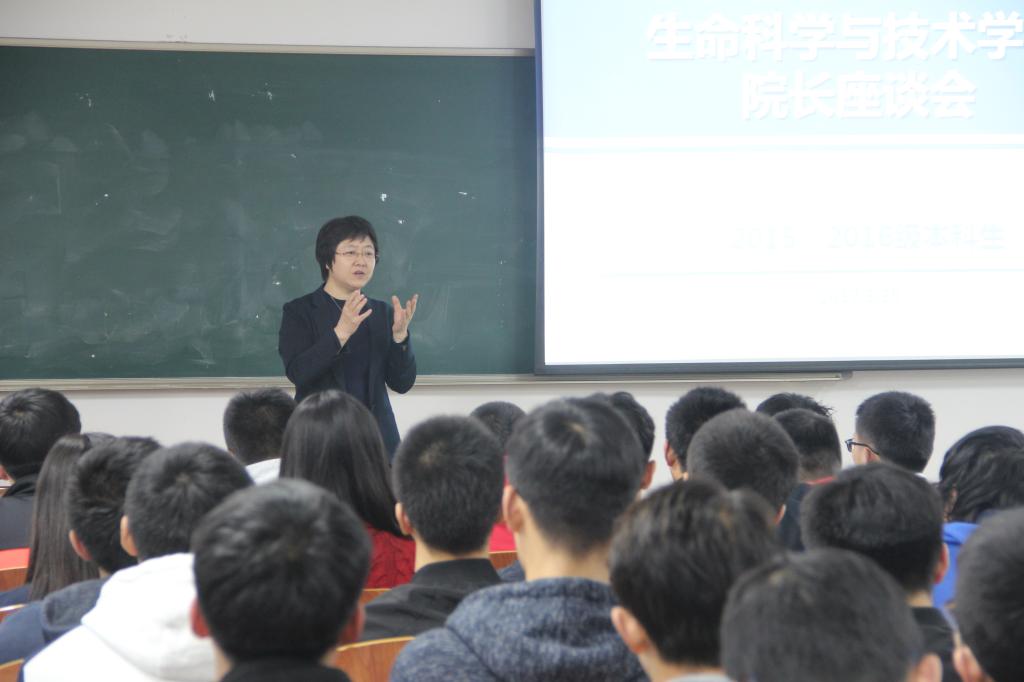 贾院长首先从工程的内涵讲起,深入浅出的解释了“生物学”与“生物工程”专业的区别,并以自身的成长经历结合生动鲜活的实例说明了个人积极努力学习的重要性,让优秀成为习惯是一个人走向成功的保证。贾院长还对学生的人文素养、创新精神提出了要求,希望学生们能通过大学期间的学习,使自己的人生更有价值,有意义。在会上,同学们也纷纷发言,询问了自己关心的学业问题、就业问题,以及科研中的一些疑惑,贾院长一一作答。