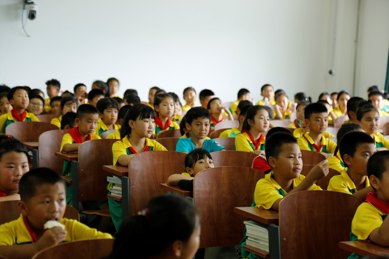 大连市凌水小学的同学们,六成以上都是外来务工人员的孩子,很多人从未近距离接触大学校园。我们怀着在进行授课的同时,也能够让小学的孩子们接触大学课堂和校园文化的想法,经过实践队员和凌水小学负责人双方的多次沟通协调,实践队队员们将三、四年级共202位同学们接到大学教室来上课。同学们排成长长的队伍,有序整齐的进入教学楼,细心体会大学的氛围与不同。