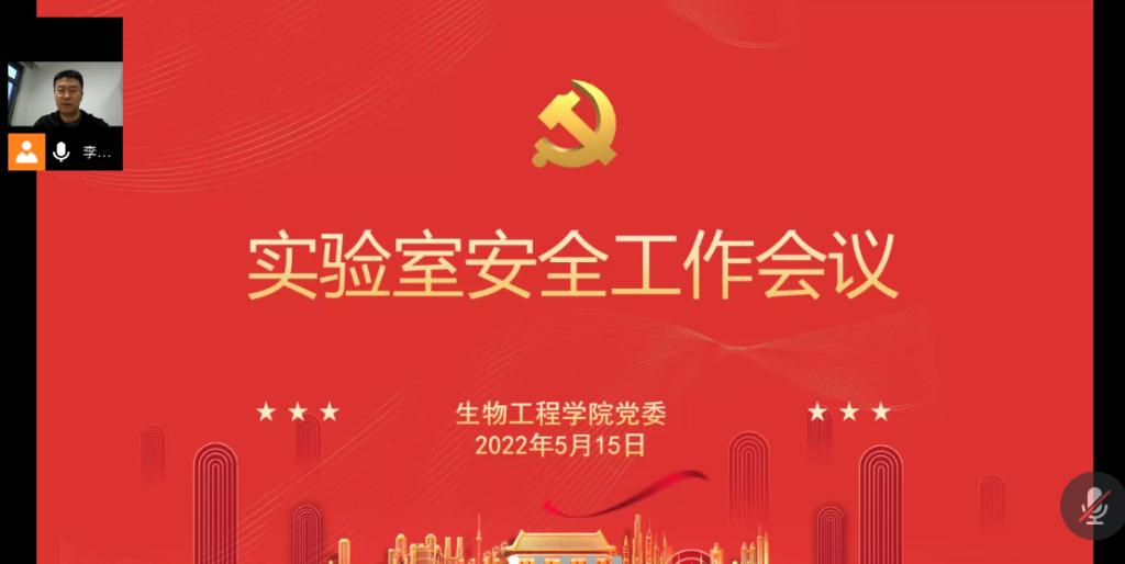 为进一步加强疫情封校期间学院实验室安全工作,全力保障师生教学科研工作有序推进,2022年5月15日晚,生物工程学院党委召开线上实验室安全工作会议。院长贾凌云教授、党委书记杨君教授、党委副书记兼副院长、纪委书记李明智及实验室安全工作负责人、党委组织员等出席会议,学院疫情防控研究生党员服务队、科研实验室党员示范岗全体成员参加会议,会议由李明智主持。
