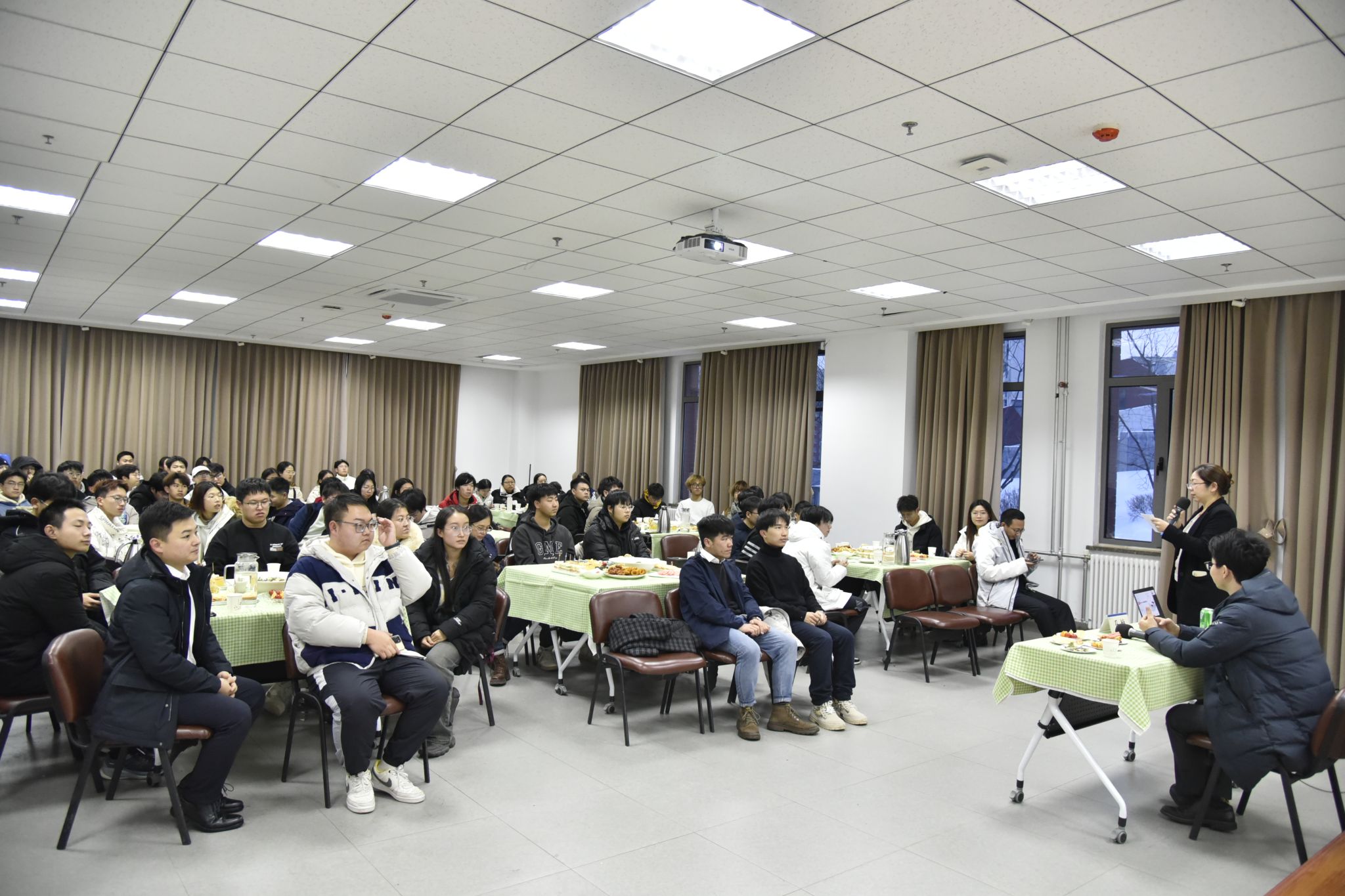 研讨会后,来自生物工程学院和未来技术学院的近百名本研学生共同参加了“知微育见•对话未来”主题讲座活动,活动由生物工程学院党委副书记、副院长赵婷婷主持。乔楠博士以“华为在AI4Science领域的探索和实践”为题,揭示了人工智能在未来科技领域的发展前景,并提出要把生物学、数学、计算机、物理、化学等多领域知进行识整合,运用生物医学领域数据分析,构建机器学习的模型和深度学习模型,并鼓励同学们要紧跟时代步伐,走近人工智能领域,共同打造AI科学计算产业的智能底座。