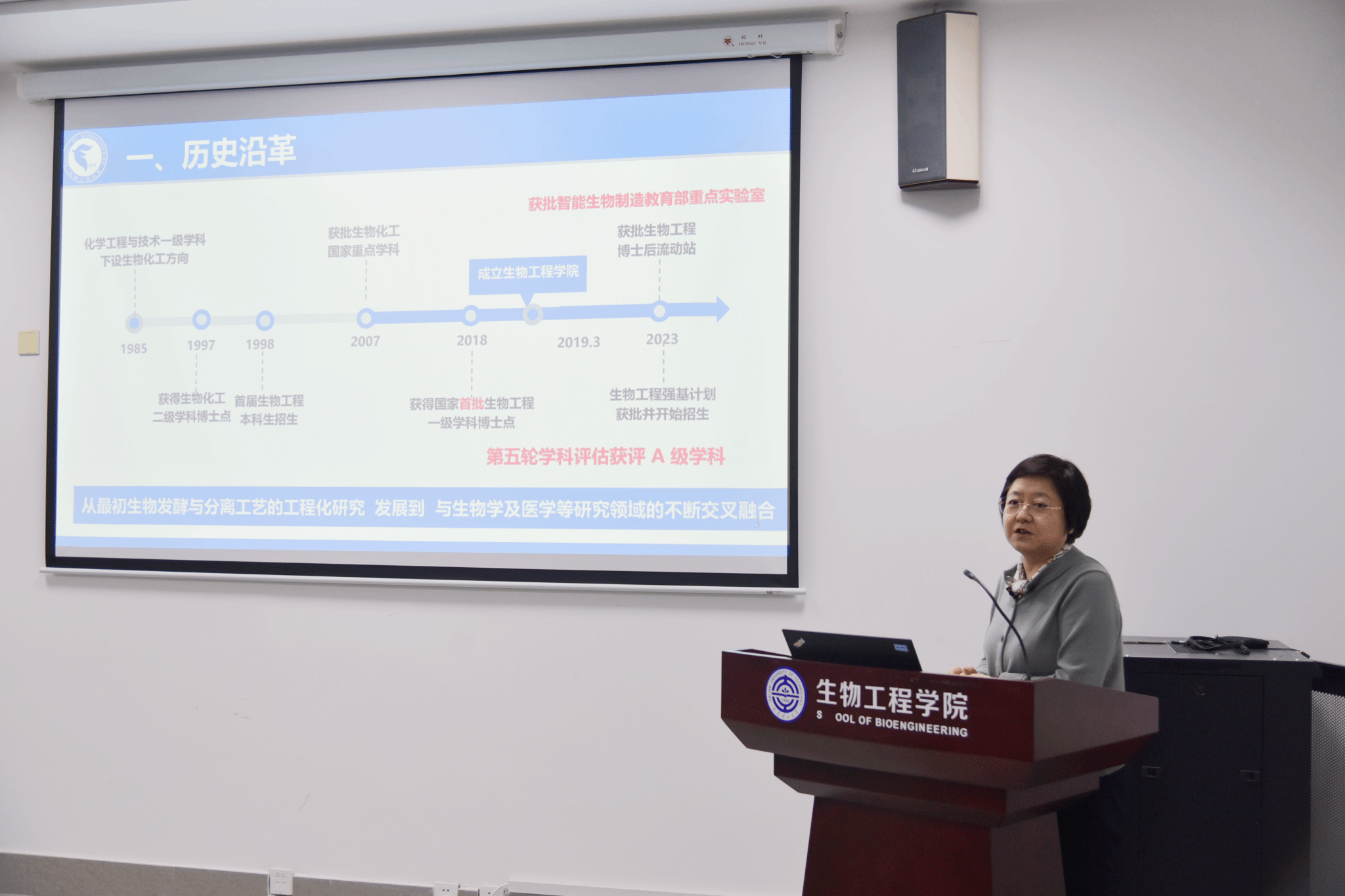 院长贾凌云教授致辞,她首先代表学院欢迎各位嘉宾、老师参与本次活动,从学科发展历史、师资队伍、科研平台建设、科研成果、人才培养及人工智能与生物学科交叉融合等方面对学院及智能生物制造教育部重点实验室进行了详细介绍,并希望通过对话交流,聚焦未来新兴科技人才培养,集中学院优势教科研先进资源,推进课程体系创新重构,以科教融合、产教融合方式形成“智能+”、“生命健康+”等国家战略方向的学科交叉融合,实现新一代人工智能时代下传统工科研究范式的变革。