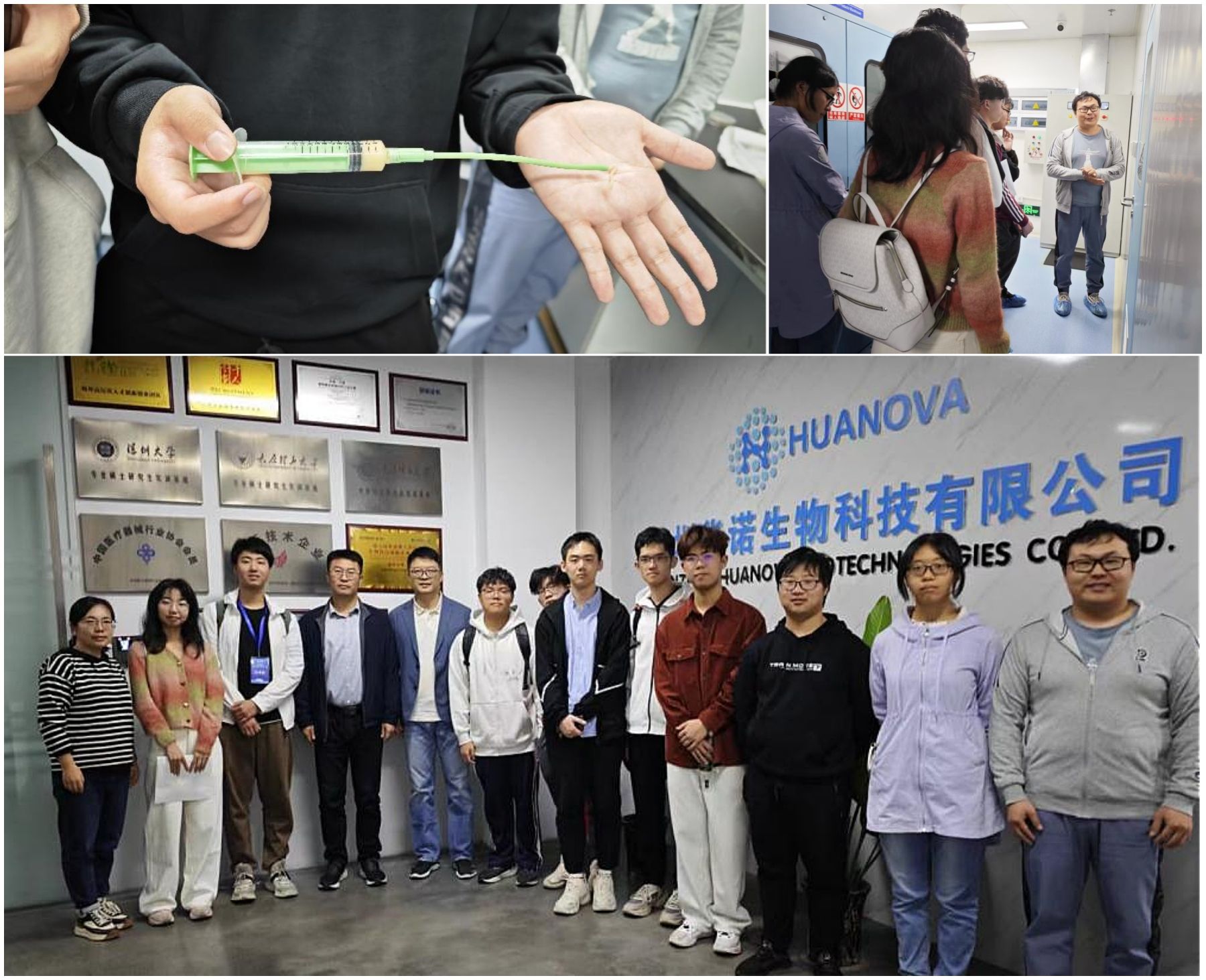 1月17日,生物工程学院师生前往迈瑞医疗总部大厦和华诺生物。迈瑞医疗的讲解员带领师生参观总部大厦展厅,展示迈瑞30年来的发展成果。迈瑞专注于辅助医疗器械的制造,在手术器械及医疗影像设备研发方面取得众多创新突破。国产医疗设备的发展速度令师生赞叹,迈瑞的大胆创新支撑着企业的进一步发展。迈瑞人力资源负责人与实践团师生座谈,围绕企业发展前景、人工智能应用、生物工程专业就业等问题为实践团师生答疑解惑。随后实践团驱车前往位于深圳市宝安科技创新园的深圳华诺生物科技有限公司。华诺生物聚焦止血凝胶和光固化胶体明胶生物墨水,拥有自主研发团队、科研实验室和生产车间。负责人带领师生参观并实地讲解科研成果从实验室到产业化的全过程,让同学们深刻感觉到成果转化的重要意义。