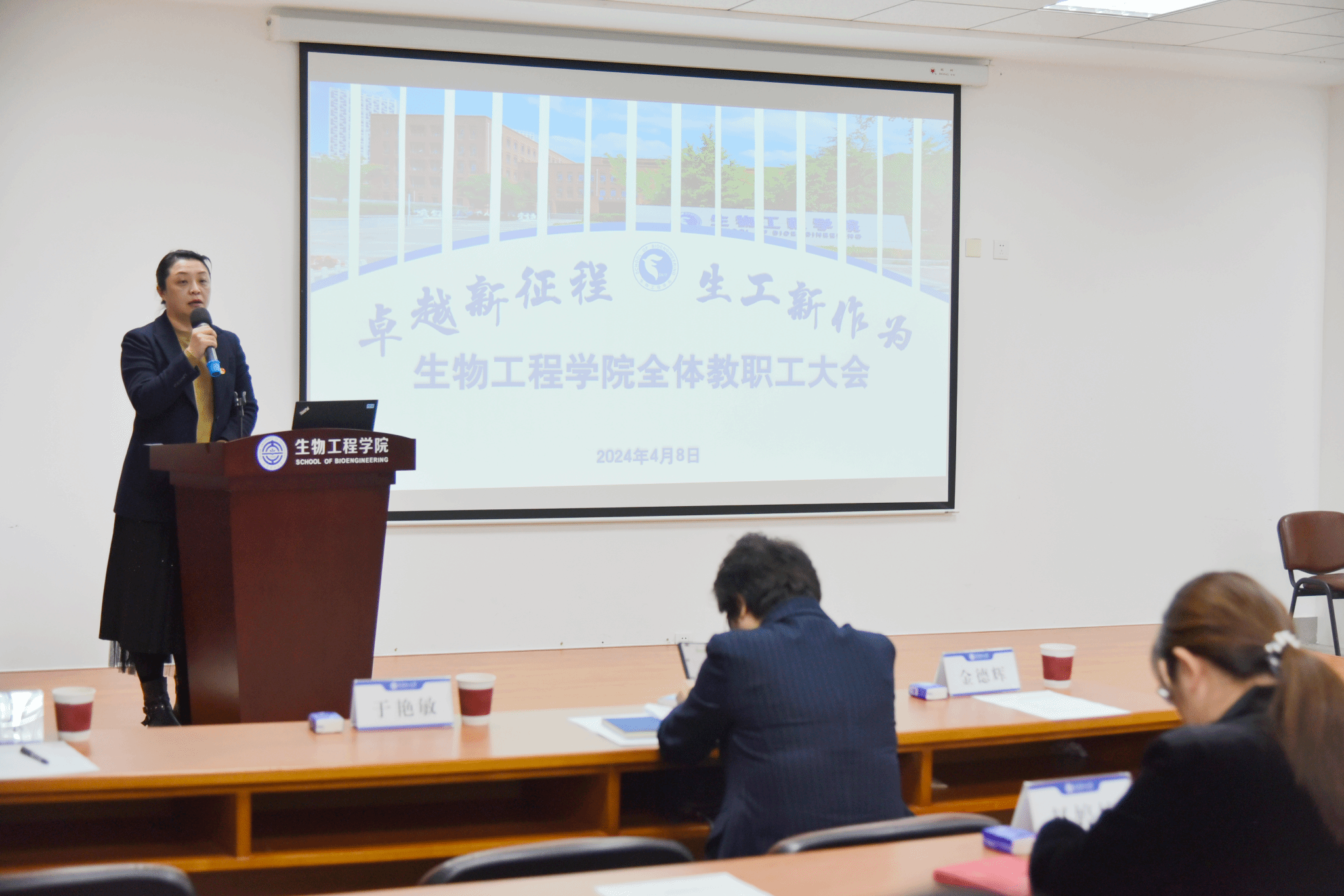 为贯彻落实学校2024年工作会议精神,进一步凝聚全院师生卓越发展共识,部署学院全年重点工作。4月8日下午,生物工程学院全体教职工大会在知微楼116会议室举行,党政领导班子成员、全体教职工参加会议。会议由学院党委书记杨君教授主持。