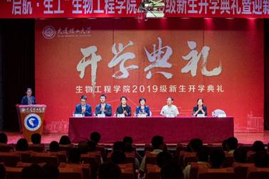 典礼在庄严的国歌声中开始,贾凌云教授代表学院向新生致欢迎辞,贾凌云介绍了学院在独立建制的全新起点上的发展状况,并为全体新生描绘了生物工程行业的美好蓝图,她用“四点希望”凝炼了学院对2019级新生的要求和无限期待:一是要志存高远,将个人的命运与国家民族命运紧密结合在一起;二是要勤奋努力,善于学习,不断增长知识与才干,为担当大任做好知识和能力储备;三是要积极锻炼身体,拥有健康的体魄,锻炼坚韧的意志品质和不屈不挠的精神;四是要勇于创新,敢于挑战不可能,成就辉煌人生。