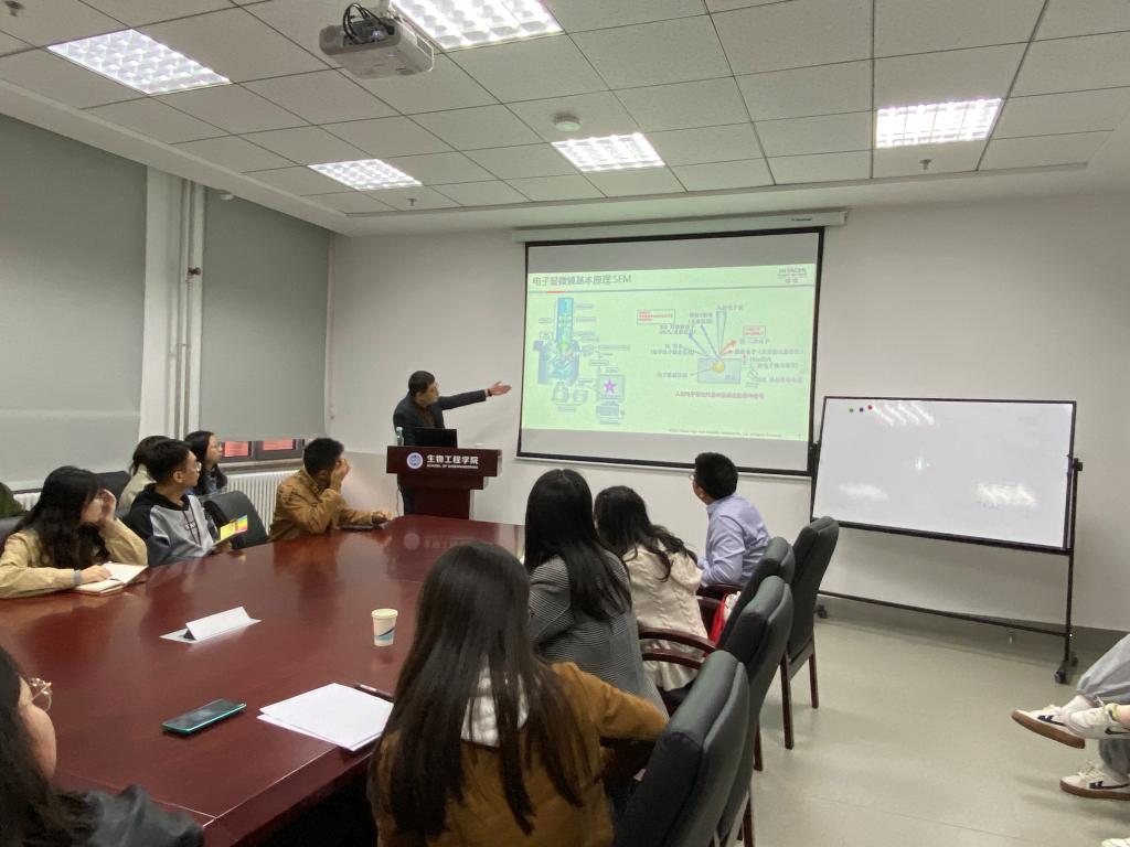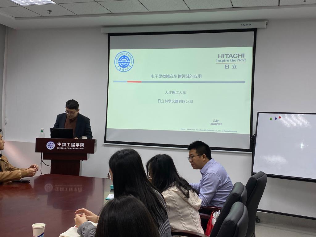 10月22日下午,日立高新东北区电镜高级经理高原工程师为学院研究生开展了一场关于电子显微镜在生物领域的应用讲座。高原工程师是日立高新资深的应用电镜工程师,在电子显微镜应用及维护方面有着丰富的经验。参加讲座除了本院学生外,还有学校电镜中心的两位老师及其它学院的部分学生。