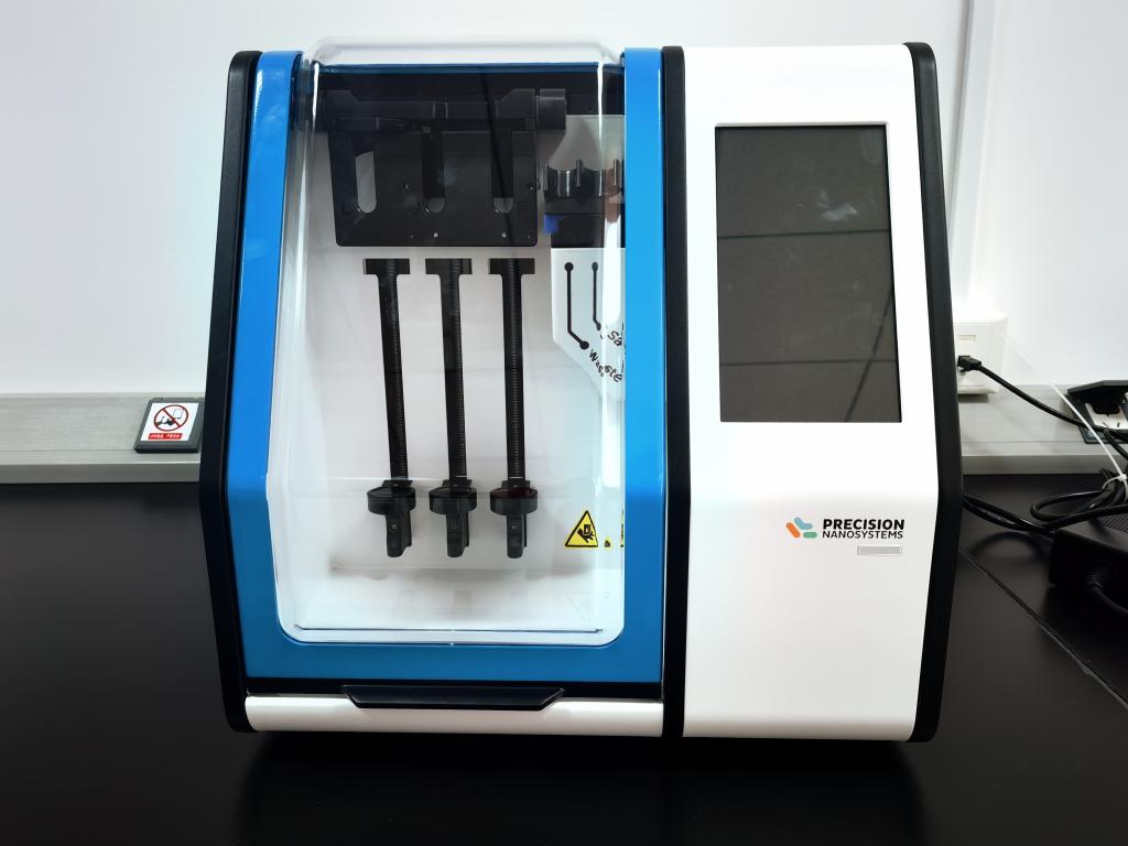 微流控纳米药物制备系统以微流控技术精确控制纳米颗粒进行自组装,可合成核酸脂质纳米粒、聚合物纳米粒、有机/无机纳米粒等新型纳米药物颗粒,应用于核酸疫苗、基因治疗、肿瘤免疫、细胞治疗、靶向治疗等新型生物制剂药物和治疗手段的开发。该设备可以合成大小均一、分散度均匀、重复性高的纳米颗粒,有利于进行系统化深入研究,对于mRNA疫雷和药物的研发起到至关重要的作用。