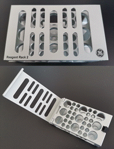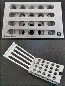 Biacore T200 有三种不同的试管架:Reagent Rack 1(图A)、Reagent Rack 2(图B)和 Sample and Reagent Rack1(图D)。
