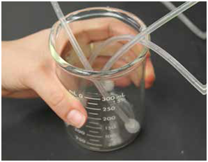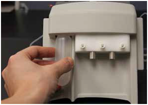 1) 保持管子另一端连接机器的同时,从瓶子上断开管子,并将断开的端部放在干净的空烧杯中。