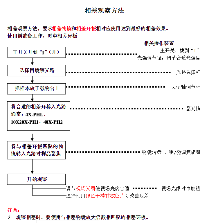 4. 从低倍镜开始观察,调节到与镜头相匹配的相差环,荧光滤块转盘拨到 “4”,“5”或“6”的位置