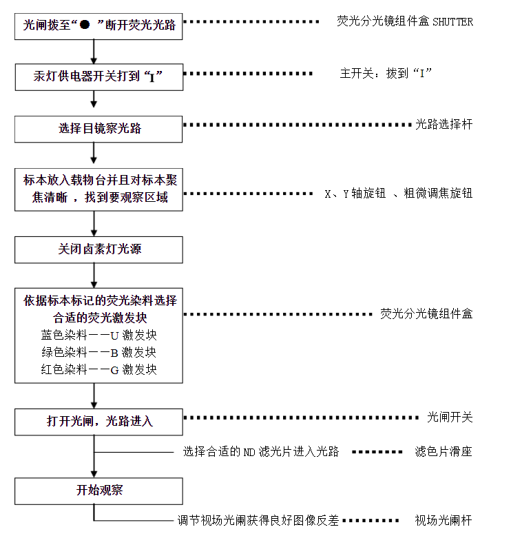 1. 关闭汞灯电源(注意:汞灯需使用半小时以上方可关闭,关闭半小时以后方可再次开启)