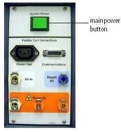 1、 打开稳压器电源,打开位于仪器左侧的总电源,该总电源可以同时开启仪器、液流车以及激光电源。