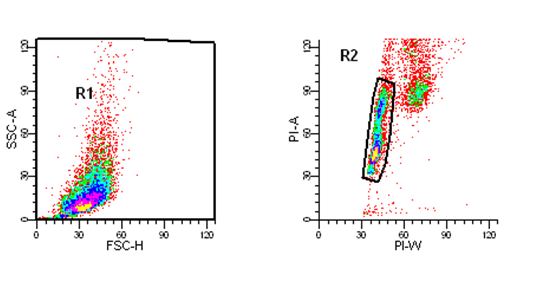 ²Gate 2:X 轴选 PI-W,Y 轴选 PI-A,OK,然后在图中圈出要分析的单个细胞;