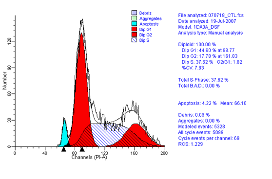 ⑴ DNA 倍体。G2/G1值.(即G2期是四倍体细胞,而G1期是二倍体细胞,比值应为1.8-2.0之间。若小于1.8,则细胞染色不充分