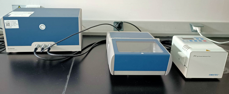 该仪器使用了压电陶瓷石英,基本振动频率为5MHz,当对片状的石英施加电压时,石英能够发生振动,如果石英上面有了物质改变,其振动行为将发生改变,此改变包含频率的改变和振动衰减的改变,这两者包含了物质的质量、厚度、密度等相关信息,通过软件拟合的办法能够得到。可对界面分子层的质量、厚度、粘度和弹性进行定量分析,并进行动力学模拟,用于生物医学高分子材料表征研究,生物材料与生物体关系的性能评测,食品或者农业行业相关有害或者有益物质及有害病菌的分析检测。